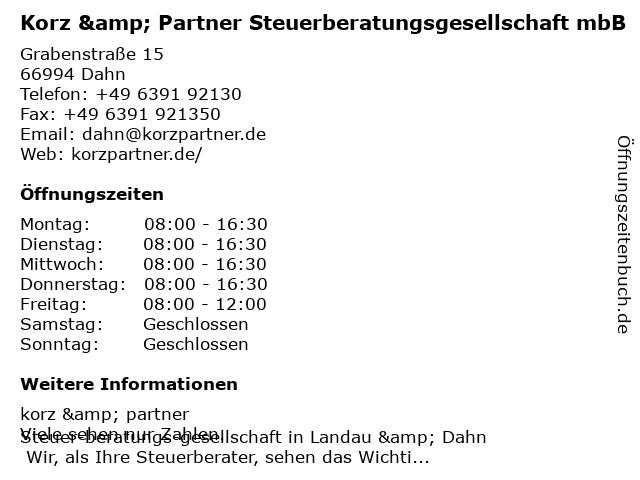 1 Korz & Partner Steuerberatungsgesellschaft mbH (Entfernung: 17,91 km) Hauptstr. 72, 67714 Waldfischbach-Burgalben 5 Debnar & Geenen Steuerberatungsgesellschaft mbH (Entfernung: 10,65 km) Südring 5, 76857 Gossersweiler 6 |