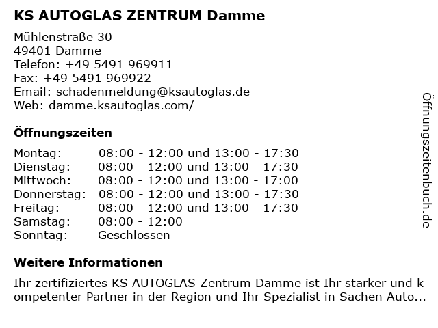| Öffnungszeiten KS AUTOGLAS ZENTRUM Damme in Damme anzeigen | |