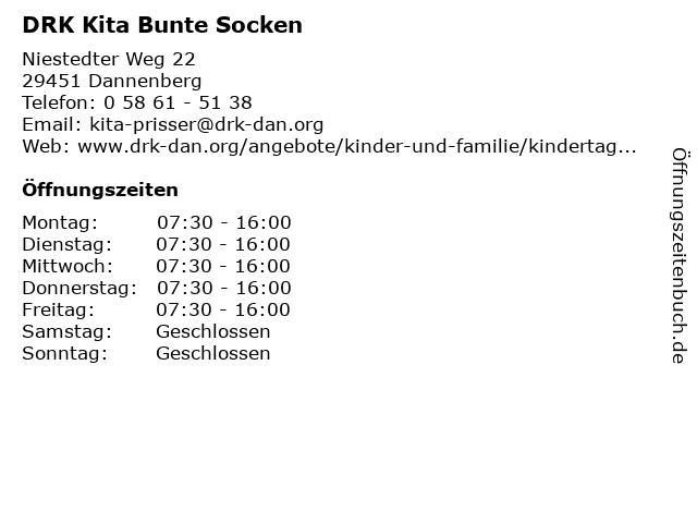 | Öffnungszeiten DRK Kita Bunte Socken in Dannenberg anzeigen | |