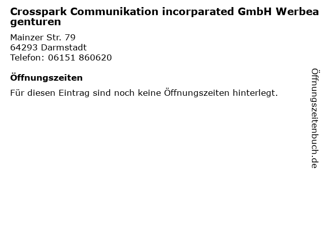 | Crosspark Communikation incorparated GmbH Werbeagenturen anrufen | |