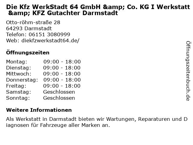 Branchen & Suchbegriffe zu Die Kfz WerkStadt 64 GmbH & Co. KG I Werkstatt & KFZ Gutachter Darmstadt:64, autoklimaanlagen, autopflege, autoreparatur, autotuning, bremsendienste, fahrzeuginspektion, gutachter, kfz, lichtmaschinenreparatur, werkstadt, werkstatt, ölwechselstation |