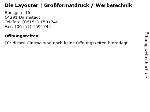 | Die Layouter | Großformatdruck / Werbetechnik anrufen | |