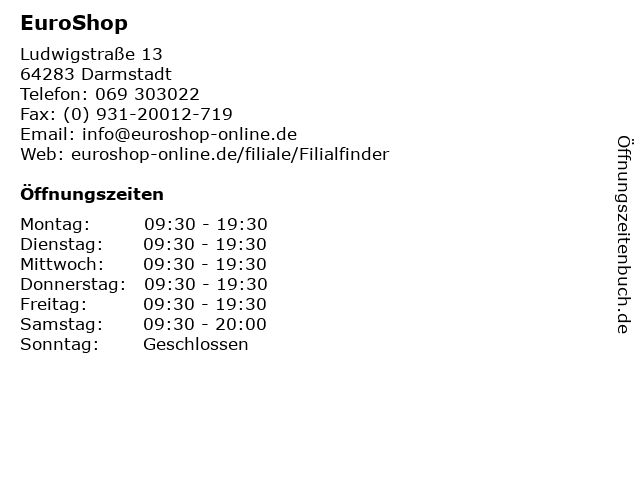 Öffnungszeiten EuroShop in Darmstadt anzeigen