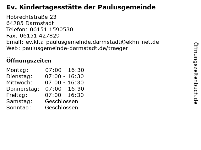 2 Evangelische Pauluskirche Darmstadt - Evangelische Paulusgemeinde Darmstadt (Entfernung: 0,10 km) Niebergallweg 20, 64285 Darmstadt 3 Evangelische Kirche am Stadtzentrum Raunheim - Evangelische Paulusgemeinde Raunheim (Entfernung: 22,37 km) Niddastraße 17, 65479 Raunheim 4 Evangelische Kirche Raunheim - Evangelische Paulusgemeinde Raunheim (Entfernung: 22,76 km) Mainstraße 19, 65479 Raunheim 5 Evangelische Pauluskirche Erbenheim - Evangelische Paulusgemeinde Wiesbaden-Erbenheim (Entfernung: 33,46 km) Ringstraße 3, 65205 Wiesbaden 6 Evangelische Kindertagesstätte der Paulusgemeinde (Entfernung: 33,49 km) Lilienthalstr. 15, 65205 Wiesbaden |