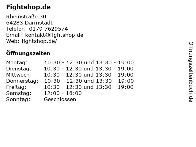Öffnungszeiten Fightshop.de in Darmstadt anzeigen | |