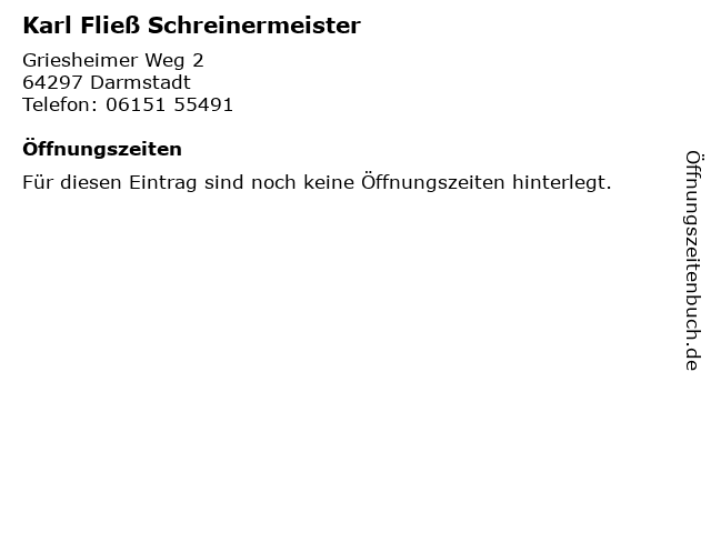 | Öffnungszeiten Karl Fließ Schreinermeister in Darmstadt anzeigen | |
