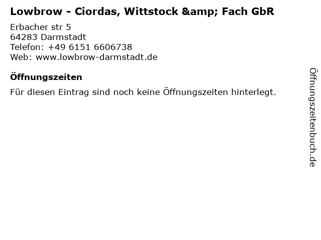 | Lowbrow - Ciordas, Wittstock & Fach GbR anrufen | |