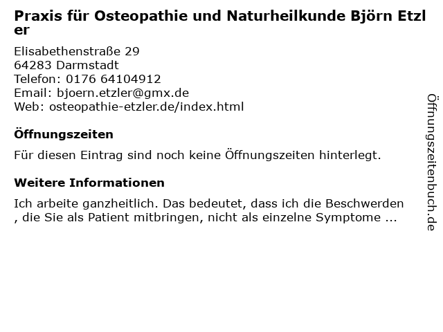 | Praxis für Osteopathie und Naturheilkunde Björn Etzler anrufen | |