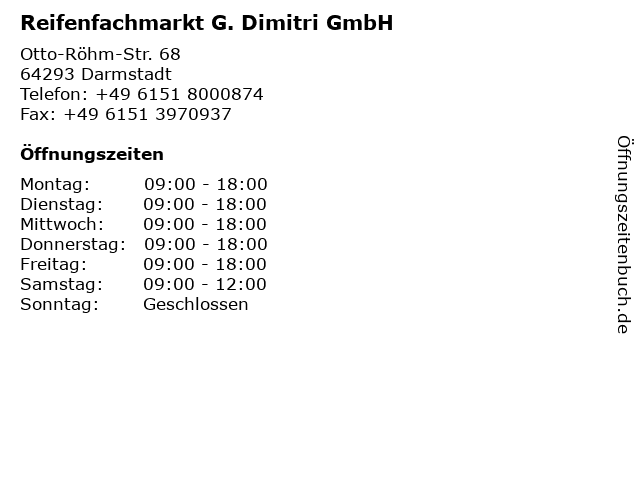 Branchen & Suchbegriffe zu Reifenfachmarkt G. Dimitri GmbH:dimitri, g., reifenfachmarkt, reifenhändler |
