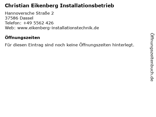| Christian Eikenberg Installationsbetrieb anrufen | |