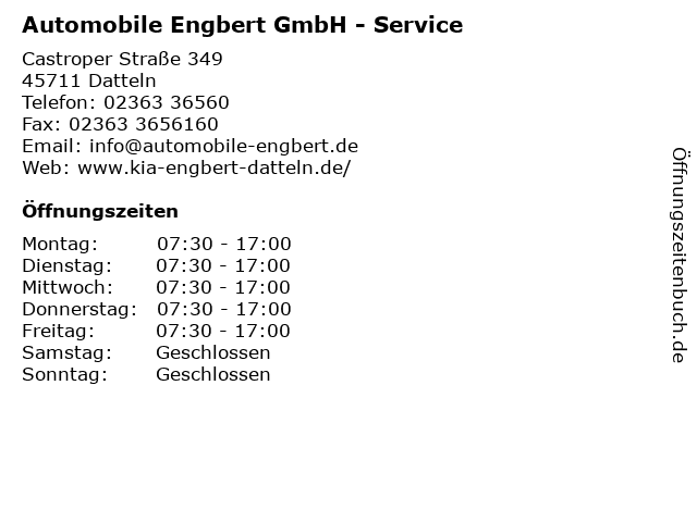 3 Automobile Engbert GmbH - Service- & Lackiercenter (Entfernung: 4,91 km) Höttingstraße 99, 45711 Datteln 6 |