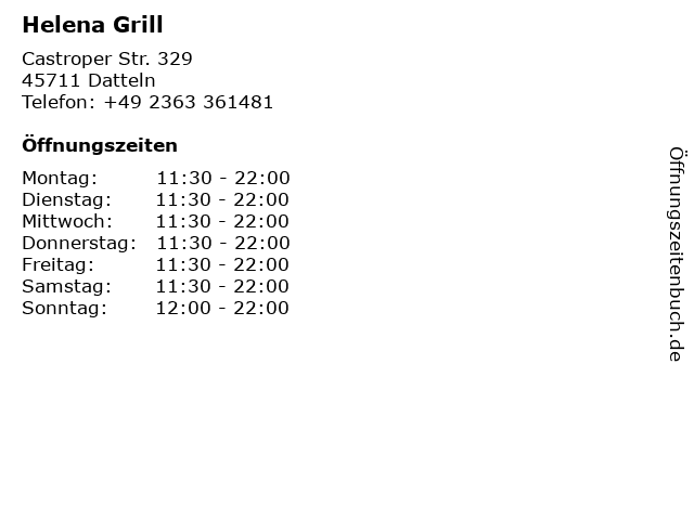 | Öffnungszeiten Helena Grill in Datteln anzeigen | |