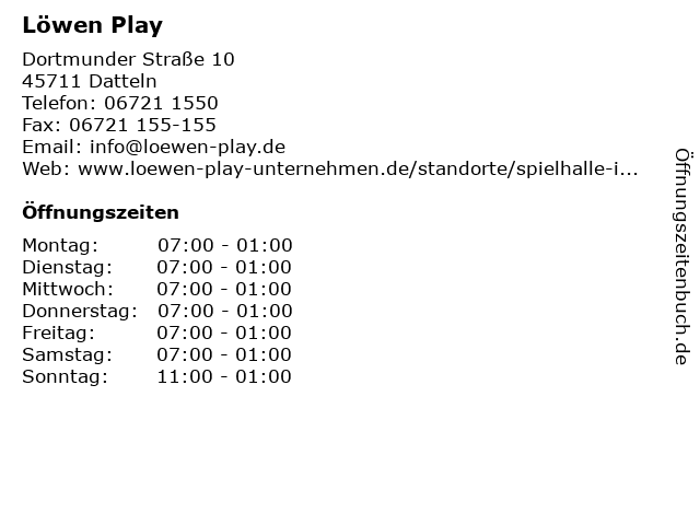 | Öffnungszeiten Löwen Play in Datteln anzeigen | |