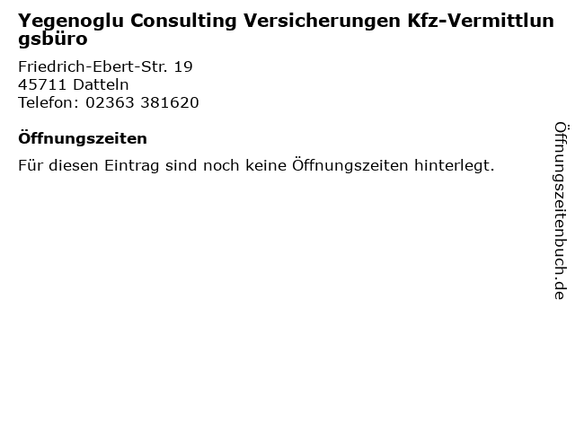 | Yegenoglu Consulting Versicherungen Kfz-Vermittlungsbüro anrufen | |