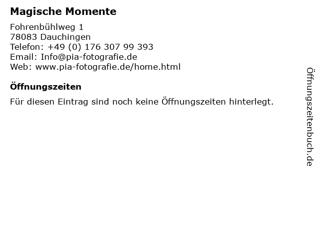 | Öffnungszeiten Magische Momente in Dauchingen anzeigen | |