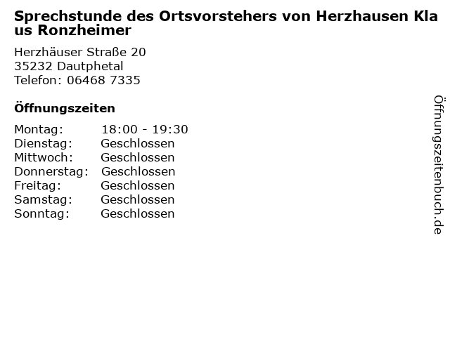 Branchen & Suchbegriffe zu Sprechstunde des Ortsvorstehers von Herzhausen Klaus Ronzheimer:bürgerservice, des, gemeindewohl, herzhausen, klaus, kommunalpolitik, ortsvorstehers, ronzheimer, sprechstunde, von |