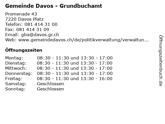 Branchen & Suchbegriffe zu Gemeinde Davos - Grundbuchamt:amt, behörde, davos, gemeinde, grundbuchamt, verwaltung |