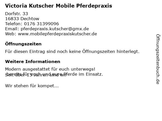 | Victoria Kutscher Mobile Pferdepraxis anrufen | |