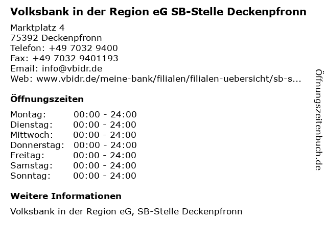 Branchen & Suchbegriffe zu Volksbank in der Region eG SB-Stelle Deckenpfronn:bank, beratung, deckenpfronn, eg, geldautomat, genossenschaft, immobilienagentur, kredit, region, sb, stelle, versicherung, volksbank |
