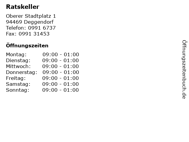 | Öffnungszeiten Ratskeller in Deggendorf anzeigen | |