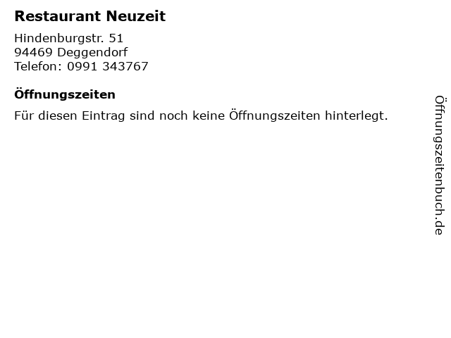 | Öffnungszeiten Restaurant Neuzeit in Deggendorf anzeigen | |