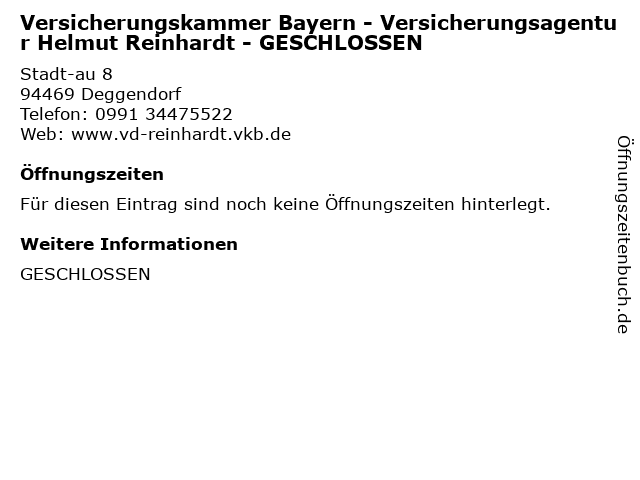 | Versicherungskammer Bayern - Versicherungsagentur Helmut Reinhardt - GESCHLOSSEN anrufen | |