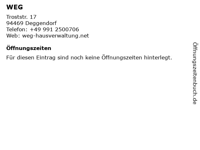 | Öffnungszeiten WEG in Deggendorf anzeigen | |