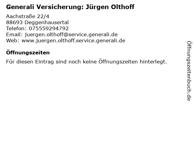 | Generali Versicherung: Jürgen Olthoff anrufen | |