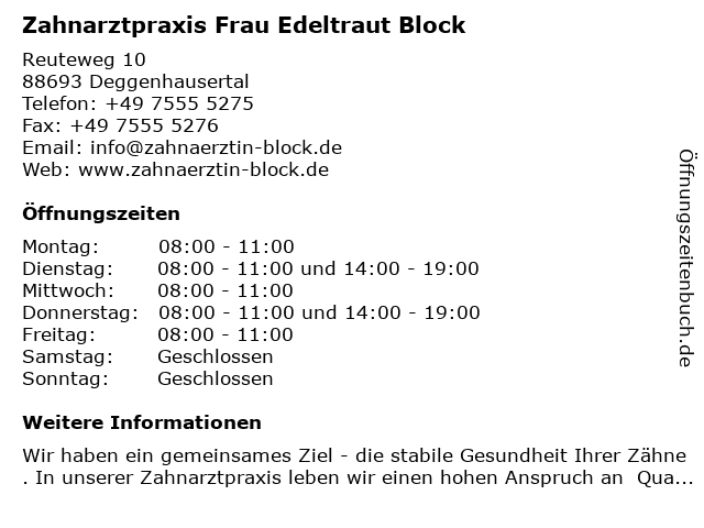 | Donnerstag | 08:00-11:00 und 14:00-19:00 |
