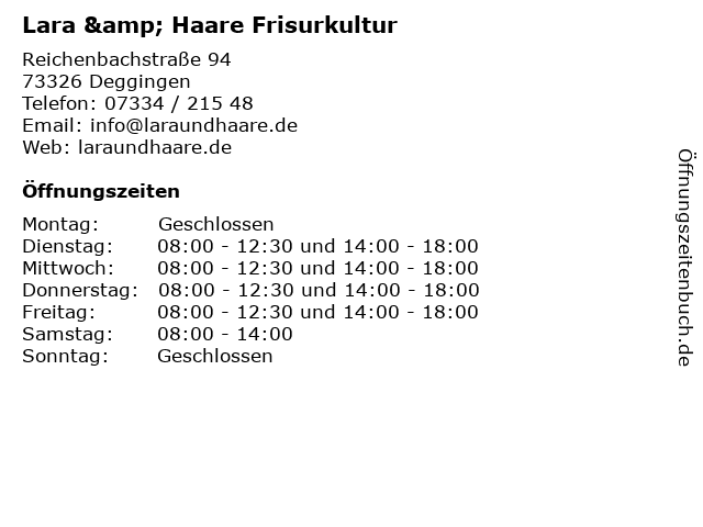 | Öffnungszeiten Lara & Haare Frisurkultur in Deggingen anzeigen | |