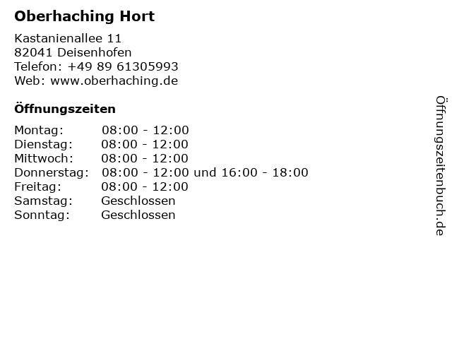 | Öffnungszeiten Oberhaching Hort in Deisenhofen anzeigen | |