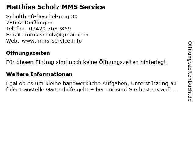 Branchen & Suchbegriffe zu Matthias Scholz MMS Service:matthias, mms, scholz, service |