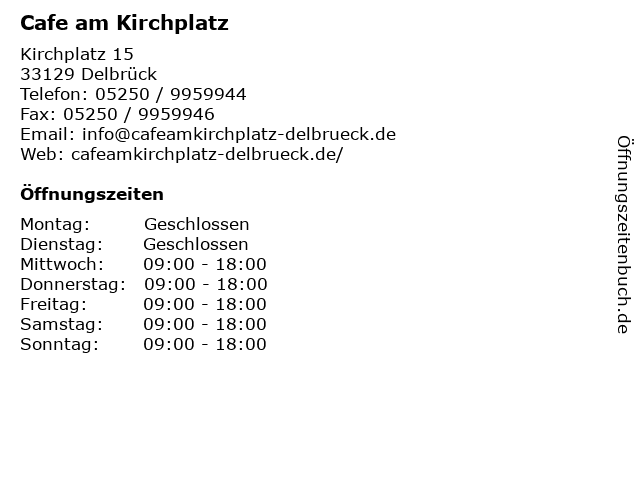 | Öffnungszeiten Cafe am Kirchplatz in Delbrück anzeigen | |