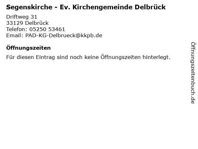 | Segenskirche - Ev. Kirchengemeinde Delbrück anrufen | |