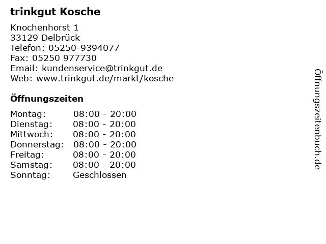 | Öffnungszeiten trinkgut Kosche in Delbrück anzeigen | |