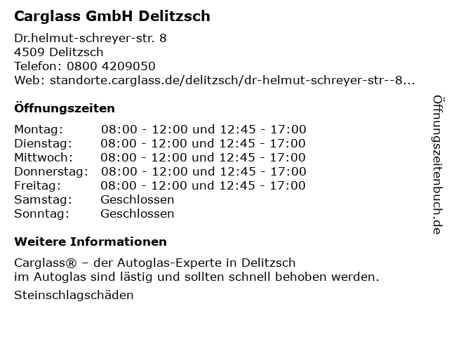 | Telefonnummer Carglass GmbH Delitzsch in Delitzsch (0800 4209050) anrufen | |
