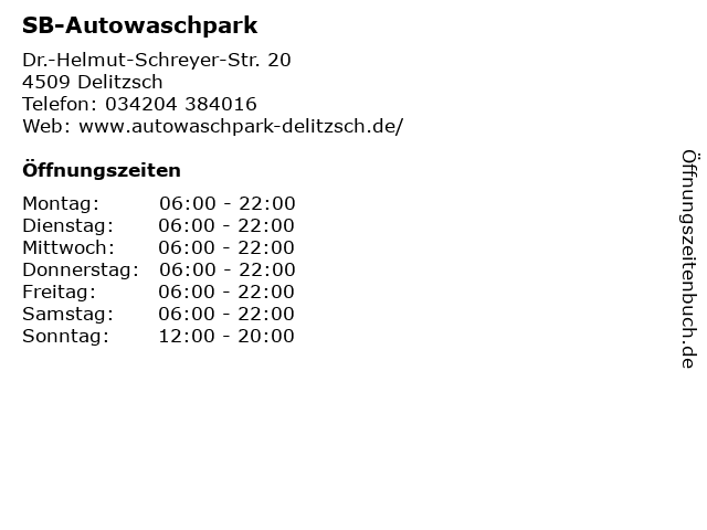 | Öffnungszeiten SB-Autowaschpark in Delitzsch anzeigen | |