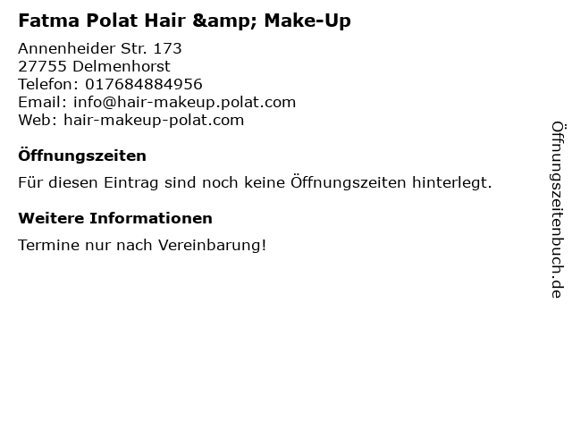 Branchen & Suchbegriffe zu Fatma Polat Hair & Make-Up:fatma, friseur, friseursalon, haarschneiden, haarstyling, hair, kosmetik, make, polat, schönheit, up |