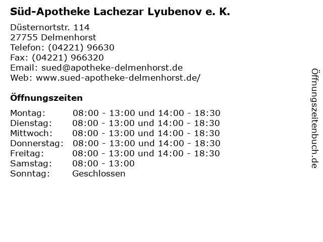 Branchen & Suchbegriffe zu Süd-Apotheke Lachezar Lyubenov e. K.:apotheke, e., k., lachezar, lyubenov, süd, süd-apotheke |
