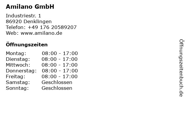 | Öffnungszeiten Amilano GmbH in Denklingen anzeigen | |