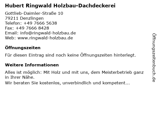 | Hubert Ringwald Holzbau-Dachdeckerei anrufen | |