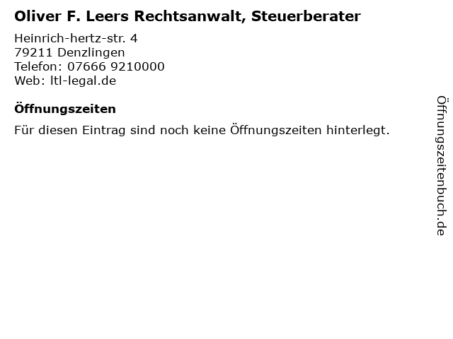 | Oliver F. Leers Rechtsanwalt, Steuerberater anrufen | |