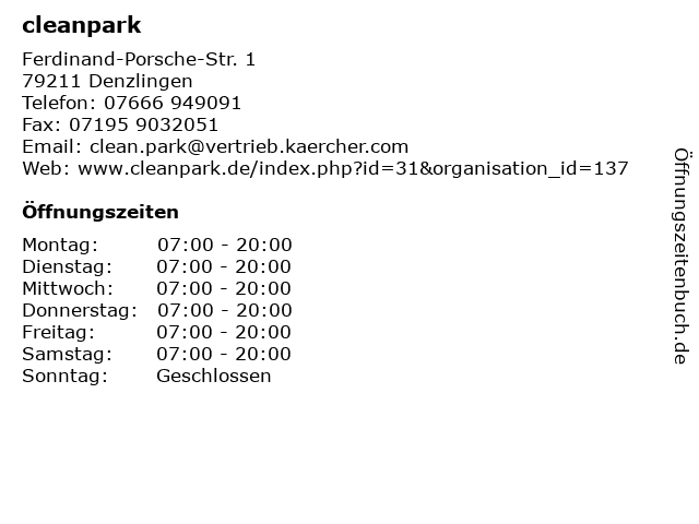 | Öffnungszeiten cleanpark in Denzlingen anzeigen | |