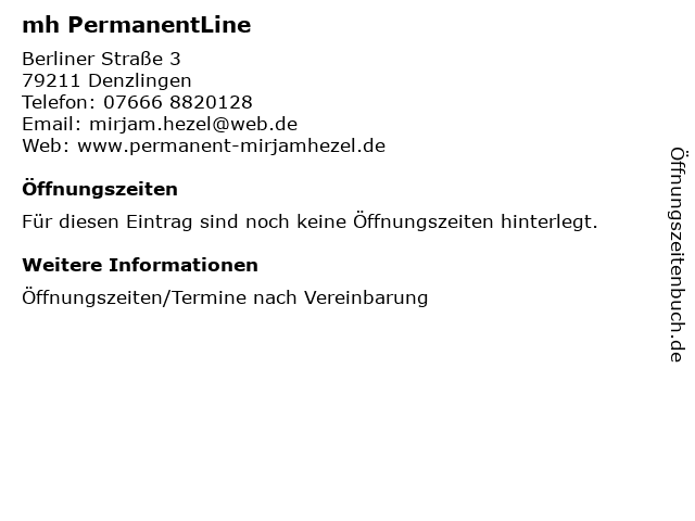 | Öffnungszeiten mh PermanentLine in Denzlingen anzeigen | |