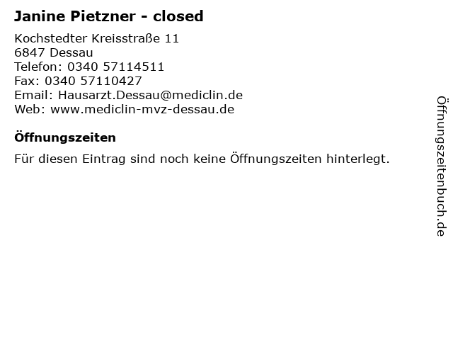 | Öffnungszeiten Janine Pietzner - closed in Dessau anzeigen | |