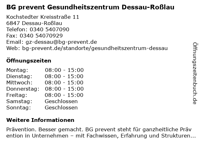 Branchen & Suchbegriffe zu BG prevent Gesundheitszentrum Dessau-Roßlau:bg, gesundheitsberatung, gesundheitszentrum, prevent, präventivmedizin, roßlau |