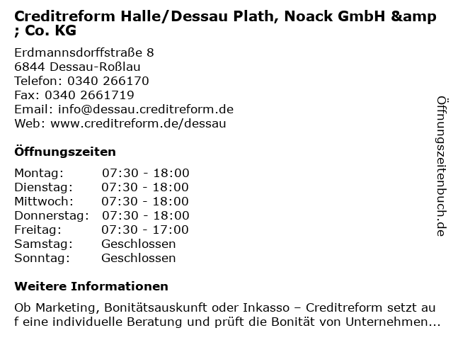 Branchen & Suchbegriffe zu Creditreform Halle/Dessau Plath, Noack GmbH & Co. KG:creditreform, halle/dessau, inkassounternehmen, noack, plath |