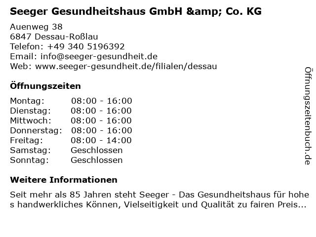 Branchen & Suchbegriffe zu Seeger Gesundheitshaus GmbH & Co. KG:bandagen, beratung, cpm, elektromobile, gehhilfen, gesundheitshaus, kompressionsstrümpfe, orthesen, orthopadietechnik, orthopädieschuhtechnik, orthopädische einlagen, reha- und medizintechnik, rollatoren, rollstühle, sanitätshaus, sanitätshaus dessau-roßlau, sanitätshaus im mvz des städtischen klinikums dessau, sanitätshaus seeger, seeger, seeger - das gesundheitshaus, stützstrümpfe |
