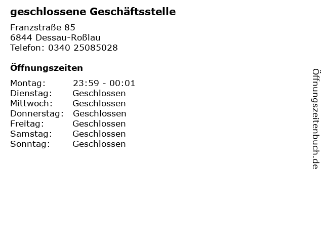Öffnungszeiten geschlossene Geschäftsstelle in Dessau-Roßlau anzeigen