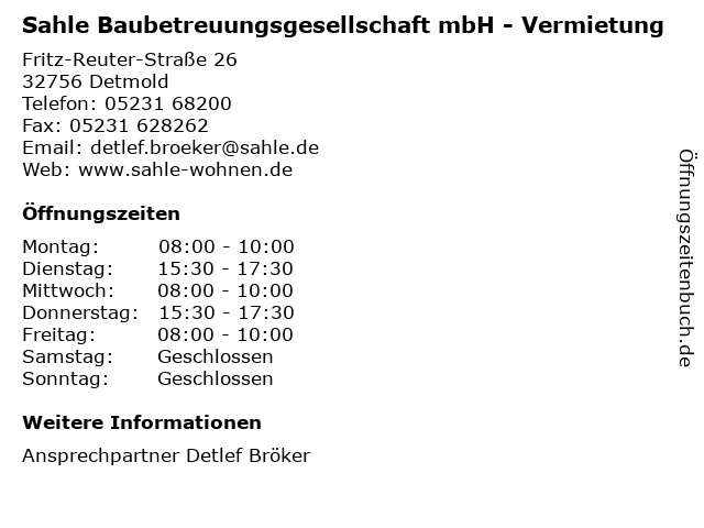 Branchen & Suchbegriffe zu Sahle Baubetreuungsgesellschaft mbH - Vermietung:baubetreuungsgesellschaft, kundenbetreuung, mbh, mietwohnung, sahle, vermieter, vermietung, wohnen |